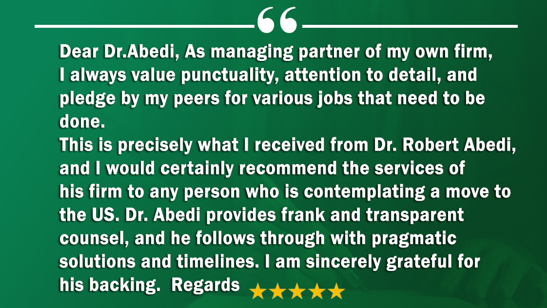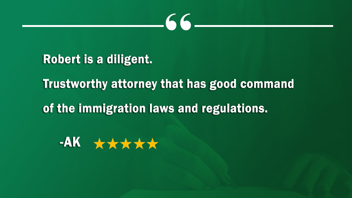 Robert is a diligent. trustworthy attorney that has good command of the immigration laws and regulations. AK